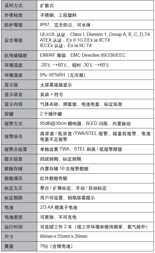 ? 體積小、重量輕、易于攜帶方式,大屏幕的液晶顯示氣體濃度