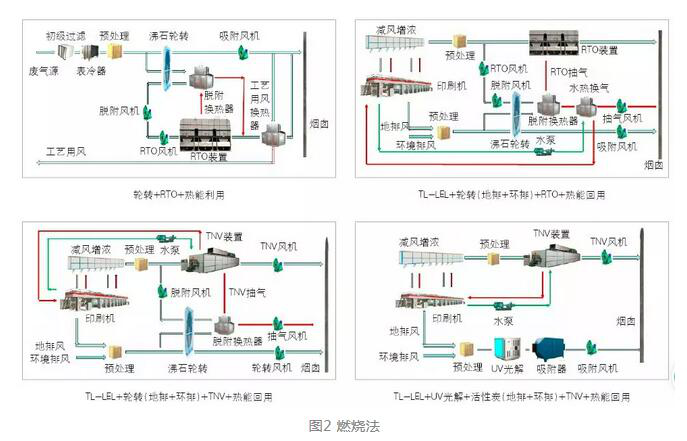 此外,該方法用一個小轉輪吸附印刷機、干復機下排風和環境風后送入RTO處理,使車間環境空氣更潔凈。總體來說,該方案實現了多種技術組合和智能化控制,性價比高,效果好,有前景。