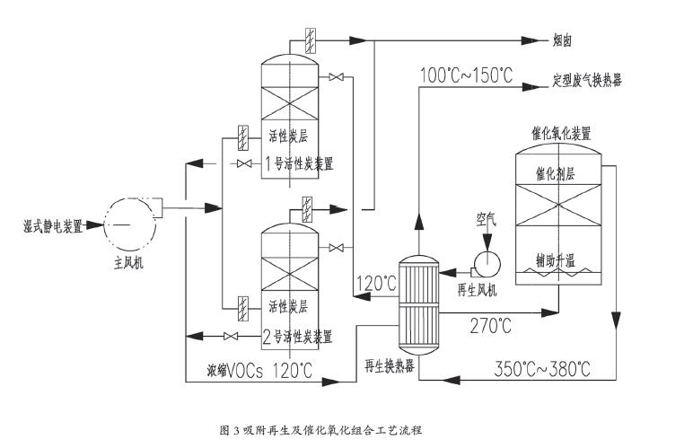 2.3 吸附再生及催化氧化組合工藝流程