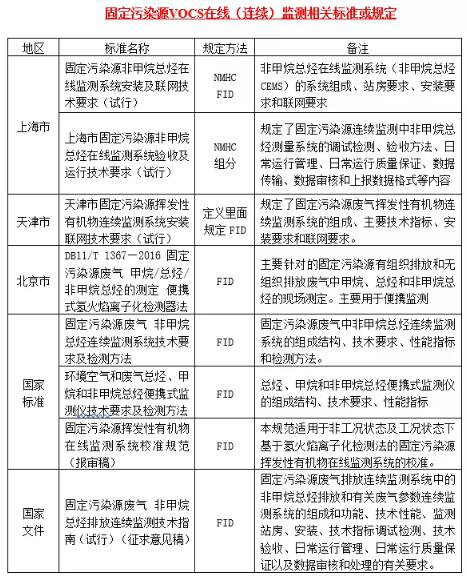 1)上海:《上海市固定污染源非甲烷總烴在線監測系統安裝及聯網技術要求(試行)》、《上海市固定污染源非甲烷總烴在線監測系統驗收及運行技術要求(試行)》;