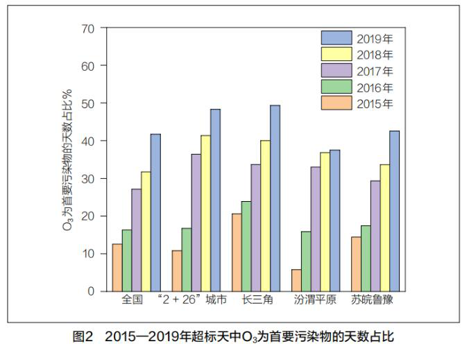 自2013年相繼實施《大氣污染防治行動計劃》《打贏藍天保衛戰三年行動計劃》以來,我國環境空氣質量改善效果明顯,空氣中二氧化硫(SO2)、二氧化氮(NO2)、可吸入顆粒物(PM10)、細顆粒物(PM2.5)、一氧化碳(CO)濃度顯著下降,尤其是PM2.5污染控制取得顯著成效,但是臭氧(O3)污染卻呈逐年加重的趨勢,O3污染防控形勢嚴峻。