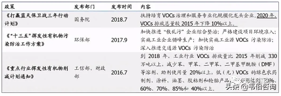 圖表 4:國(guó)家VOCs治理重點(diǎn)規(guī)劃與政策內(nèi)容