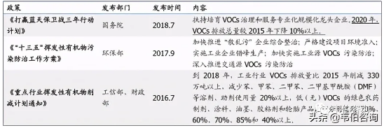 石油、化工、涂裝及印刷行業的排放量較高,對環境危害較大,屬于政府重點關注的行業。2017年1月,國務院印發《“十三五”節能減排綜合工作方案》,提出實施石化、化工、工業涂裝、包裝印刷等重點行業VOCs治理工程,到2020年石化企業基本完成VOCs治理,全國VOCs排放總量比2015年下降10%以上。
