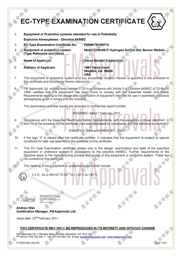 (5)較大范圍,零漂移,線性,分辨率,和傳感器的壽命,還沒有得到驗證的FM批準。